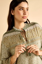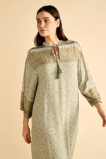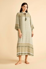 Midi Printed Olive Dress with Wide Sleeves